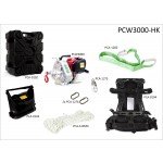 Poiché il PCW3000 è dotato di un motore Honda con tutte le posizioni, può essere trasportato all'interno della custodia e su un lato, senza problemi. Questo kit include anche una corda da 50 mx 10 mm e la sua borsa di corda (PCA-0103) che può anche essere fissata allo zaino Portable Winch.